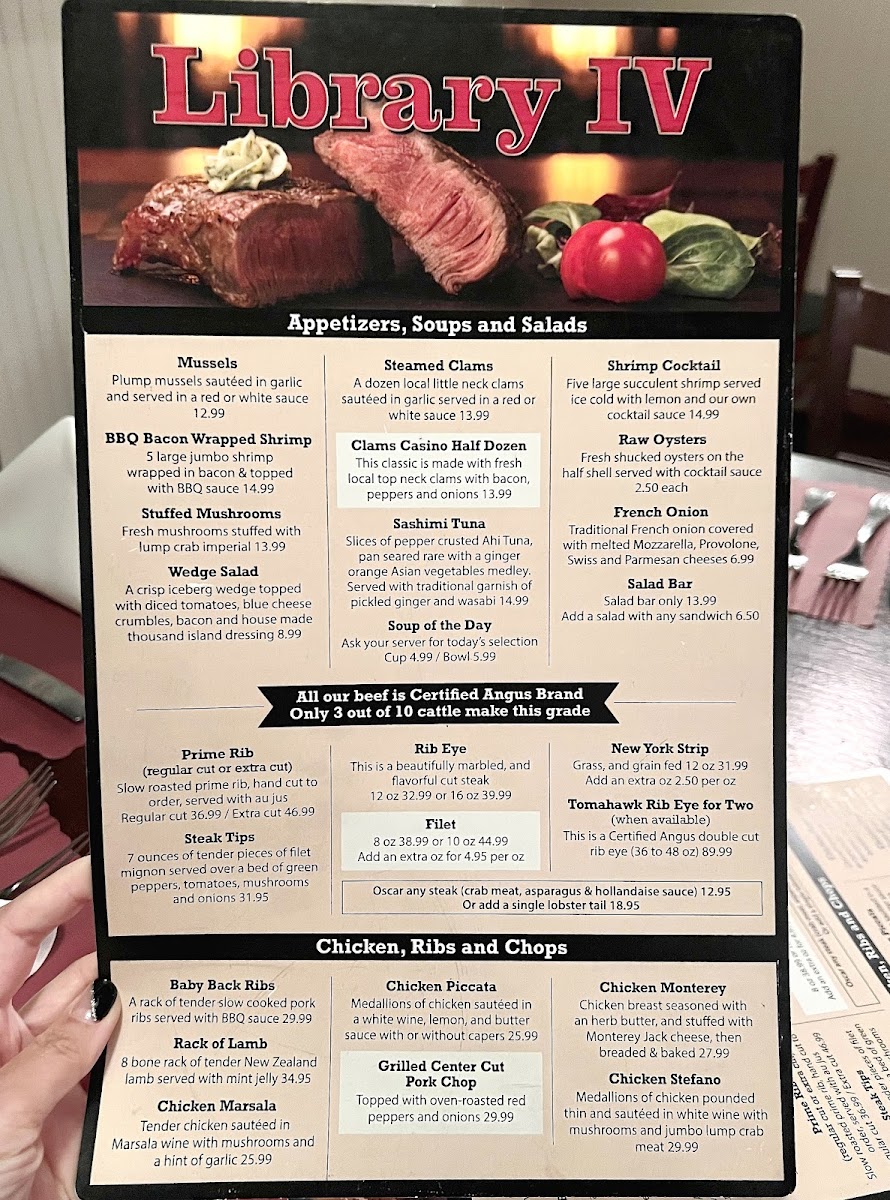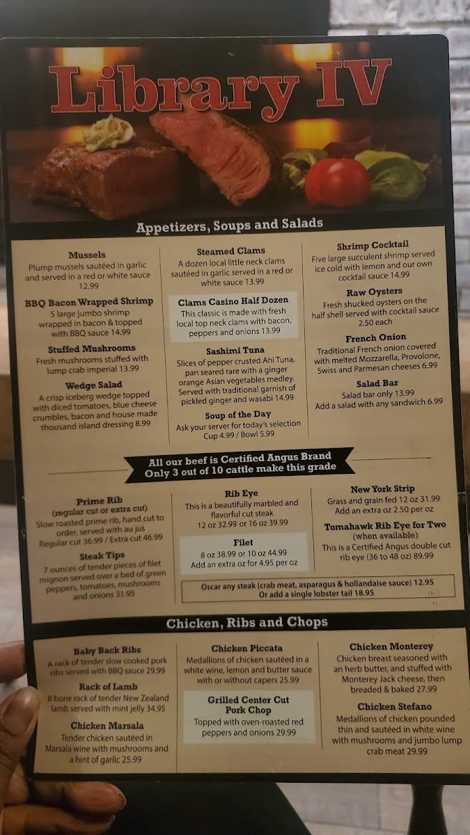 The Library Iv Menu at 1030 N Black Horse Pike in Williamstown is a delightful journey through a variety of flavorful dishes that cater to all tastes. Whether you’re in the mood for a comforting, hearty meal or something lighter, their menu offers an enticing selection. From expertly crafted appetizers to mouthwatering entrees, each dish is made with fresh ingredients, ensuring quality with every bite. The cozy atmosphere pairs perfectly with the menu’s offerings, making it a perfect spot for both casual meals and special occasions. Whether you're stopping by for a quick bite or settling in for a long meal, the options here will leave you coming back for more. Be sure to check out their seasonal specials, which bring a little extra flair to the already diverse menu!